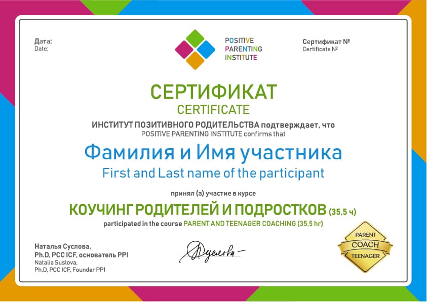 • Профессиональный коуч ( PCC ICF) с практикой более 1700 часов, в том числе в работе с родителями, подростками и семейными парами